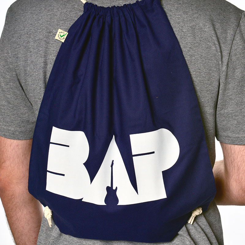 Dunkelblauer / naturfarbener Rucksack, weiß bedruckt